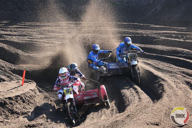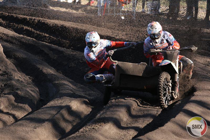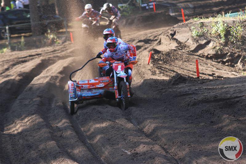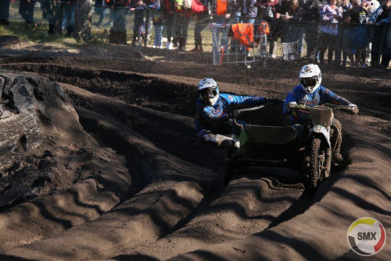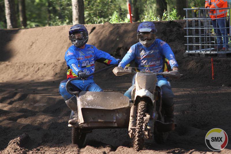 Om één uur was het de beurt aan de sidecars, met onmiddellijk Leferink-Vincent op kop, die daarna met de vingers in de neus de race wonnen. Sanders-de Veene kwamen als tweede uit de startblokken, maar moesten al gauw het hoofd buigen voor Foden-Weinmann, die even later in de fout gingen, terug vielen naar vier en daarna niet meer in hun ritme geraakten. Wijers-van Hal, op rij twee gestart, stormden in hun geliefde zand naar voor tot op plek twee, zodat Nederland al meteen de maximale score liet optekenen.
