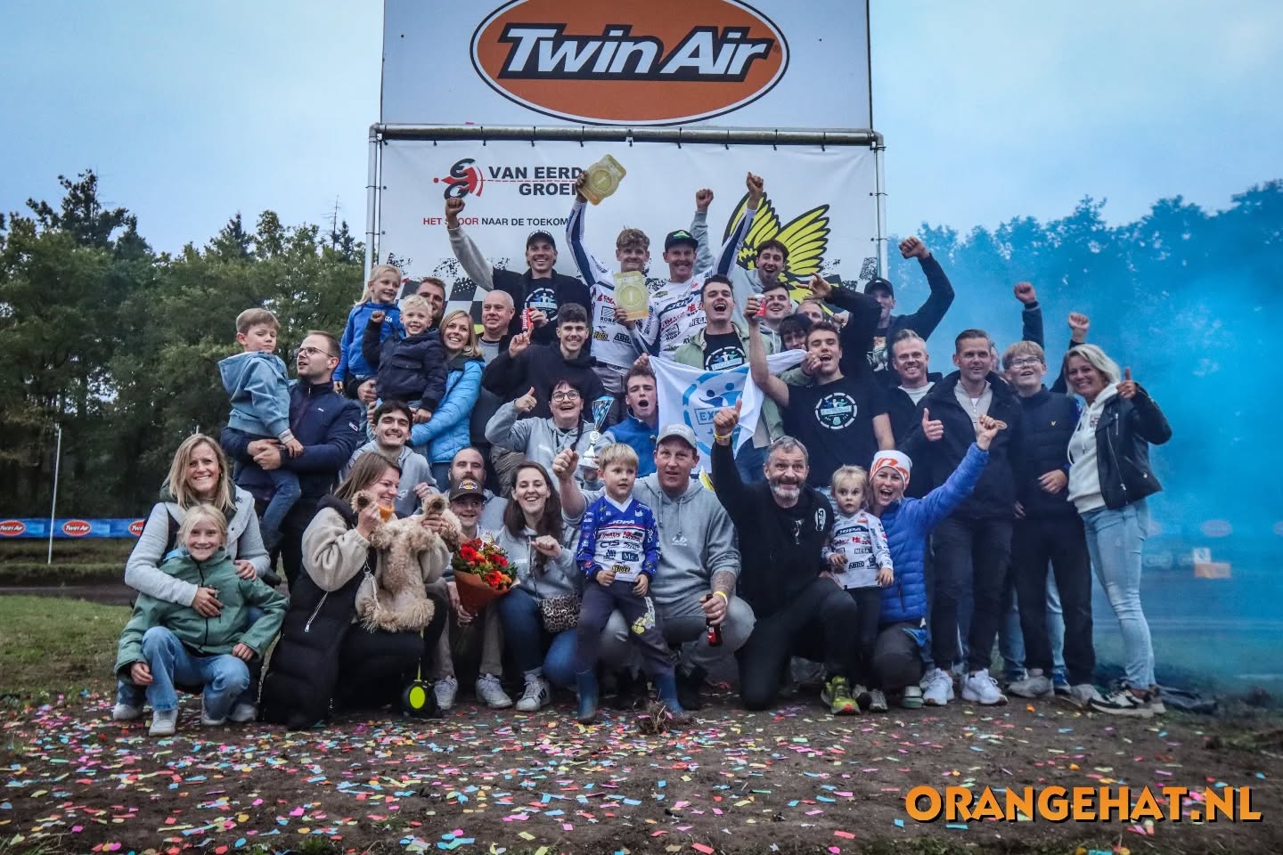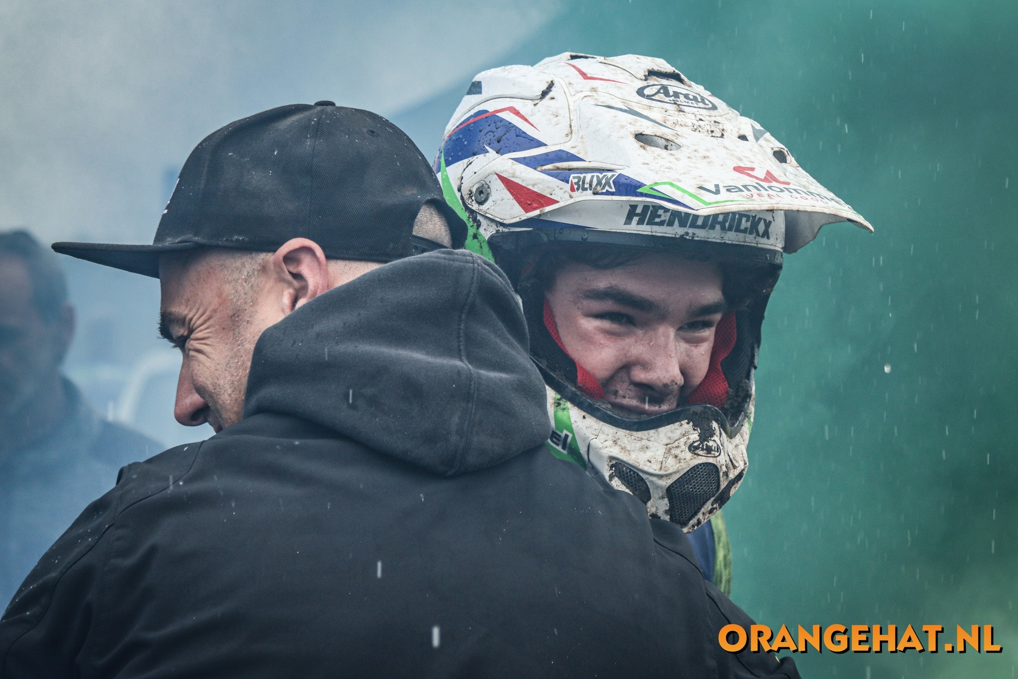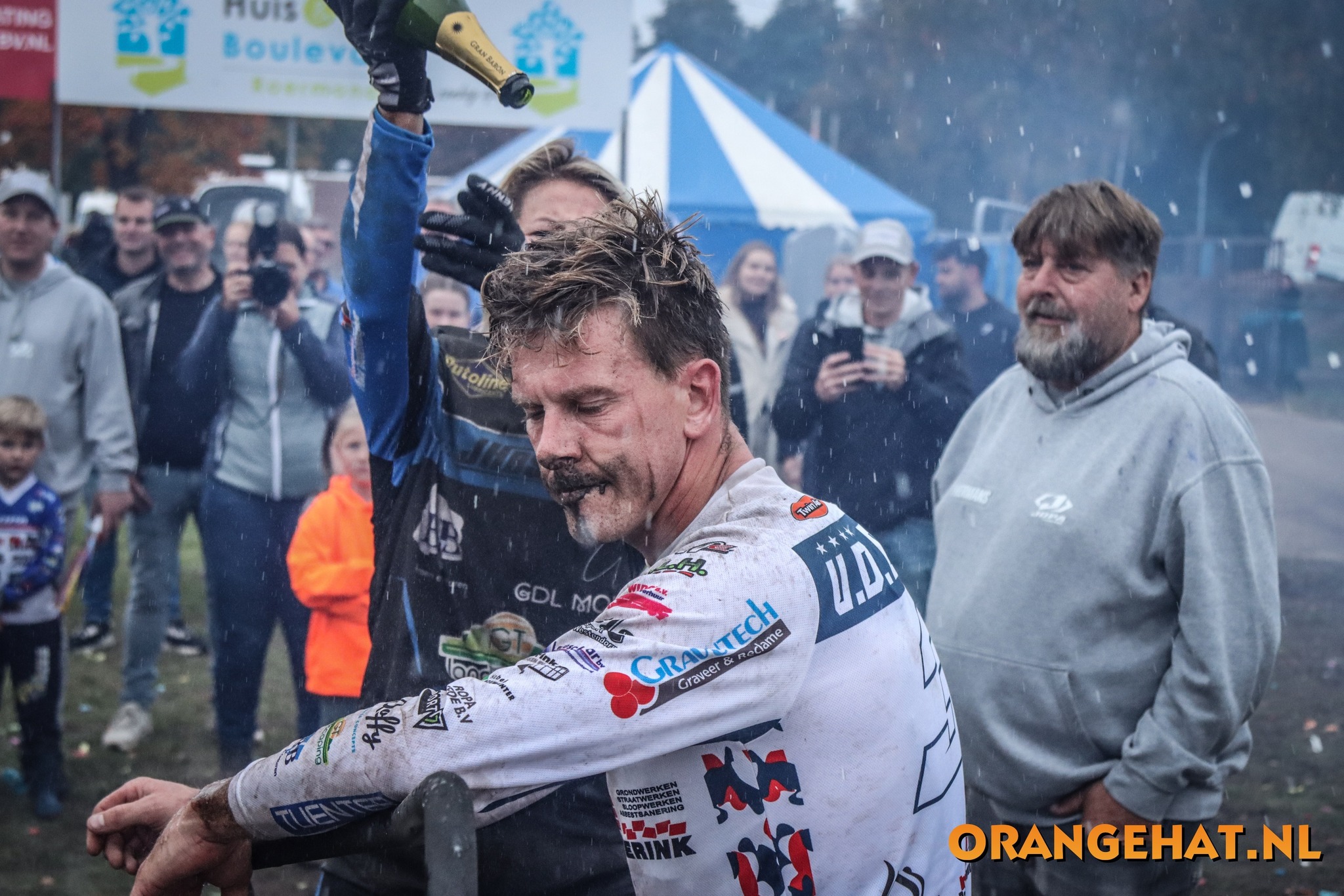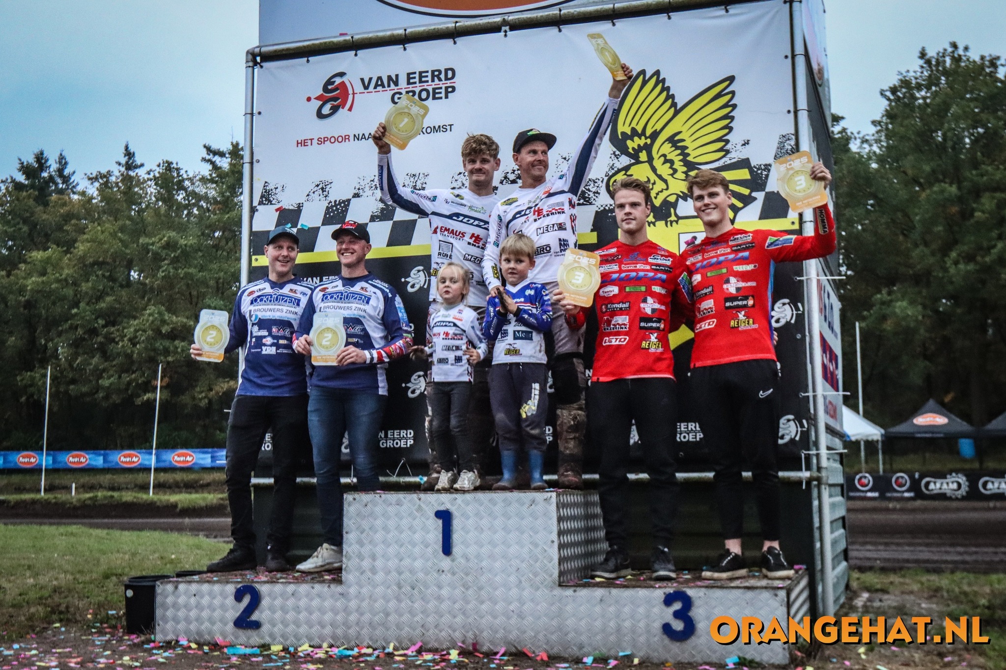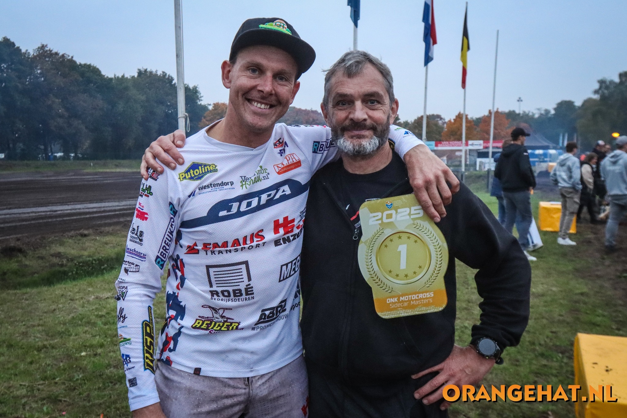 Dàt veranderde toen Leferinks motor begon te sputteren, Wijers-van Hal terug de tweede plek over namen, en zowaar de kloof met koplopers Hermans-vd Bogaart finaal wisten te dichten. Toen vlak voor de finish een gedubbeld rijder plots de weg versperde voor de aanstormende leiders Hermans-van den Bogaart, konden Wijers-van Hal deze open doelkans niet laten liggen, en pakten tot hun eigen verbazing de reeks – én dagzege in Valkenswaard. De tweede plek van Hermans volstond ruimschoots voor de Nederlandse nationale titel zijspancross 2025 , zodat voor Hermans & van den Bogaart de triple nationaal – en wereldkampioen én winnaar van de Sidecarcross of Nations definitief een feit was. Thom van de Lagemaat en Robbe de Veene finishten als derde in heat twee. Leferink en Vincent werden nog vijfde, wat nog net volstond voor plek drie in het dagklassement, én plek drie in de eindstand van het ONK, na kampioenen Hermans-vd Bogaart, en vice-kampioenen Wijers-van Hal die kunnen terug blikken op een bijzonder geslaagde ONK-campagne 2025.