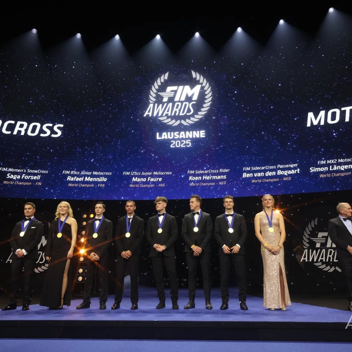 Het was overigens het jaar van de grote come backs op het FIM-gala in Lausanne. In de Moto GP-klasse mocht Marc Marquez zijn negende gouden WK-medaille ophalen, het was van 2019 geleden dat Marquez nog es wereldkampioen werd ! Een gelijkaardig scenario in de motorcross, waar in de MX GP-klasse de Fransman Romain Febvre gehuldigd werd als wereldkampioen, exact tien jaar na zijn vorige wereldtitel.