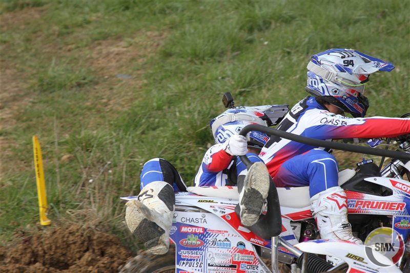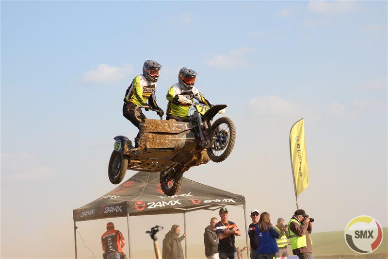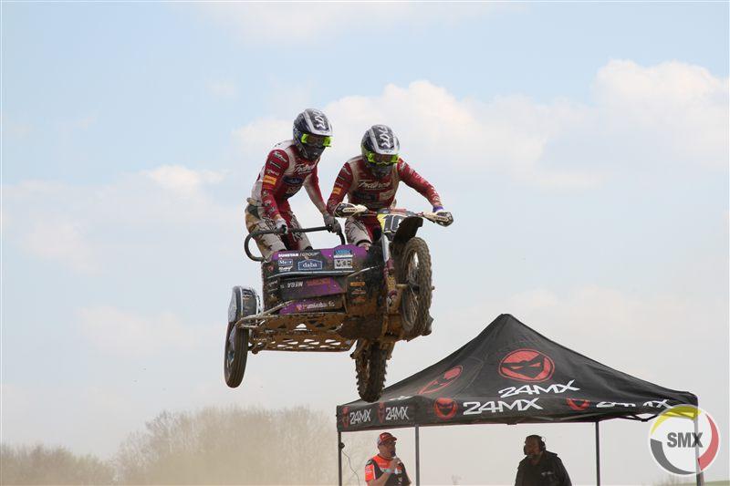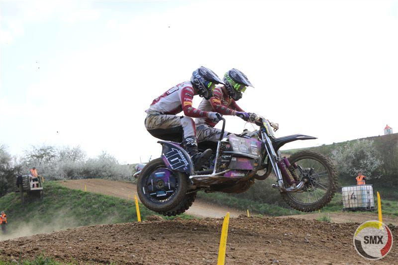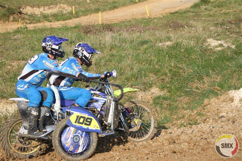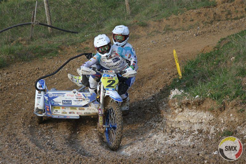 De affiche van de openingswedstrijd om het Frans kampioenschap zijspancross werd ietwat onthoofd door de afwezigheid van Hermans-Rietman (trainingsstage) en Foden-Weinmann (Dan Foden liep een dag eerder bij een onschuldige val tijdens een training een breuk op van de rechterpols en duim), maar er bleef gelukkig voldoende potentieel over om er een mooie sportnamiddag van te maken. MC Rozoy had zijn zaakjes goed voor elkaar, met uitzondering van de ellenlange rij voor wie hoopte ’s middags een frietje te stekken. Om maar te zeggen, dat het publiek in groten getale was komen opdagen in Noord Frankrijk. Zijspancross is nog steeds alive and kickin’ bij onze zuiderburen, en dat heeft natuurlijk veel te maken met het snelle rijden van local heros Killian en Evan Prunier, die ook na hun overstap van tweetakt op viertakt gisteren lieten blijken nog steeds onklopbaar te zijn in eigen land. Een trend die reeds een paar jaar aan de gang is, en waar het lokale Franse publiek telkens luidruchtig van smult.