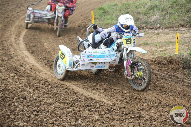 In de eerste manche pakten Vanluchene & de Veene de kopstart voor Lielbardis en de Franse snelstarters Carcreff-Hupon. Prunier raakte verdrukt in de eerste bocht, en kwam er pas als tiende terug uit. Terwijl vooraan de Letse Lielbardis-boys algauw het spoor van koploper Vanluchene bijster raakten , denderden de Franse Pruniers op het eerder smalle circuit toch vlotjes naar voor, maar beten een paar ronden hun tanden stuk op tweede man Lielbardis. Vanluchene gaf ondertussen zijn VMC-Zabel flink de sporen en won overtuigend met twintig seconden voorsprong op Prunier. Lielbardis, die in de slotfase de helft van zijn versnellingen verloor en het tempo drastisch moest laten dalen, moest zich nog flink reppen om zijn derde plek te vrijwaren voor de van heel ver terug gekeerde Sanders-Vincent. Snelstarter Carcreff werd vijfde. Een opnieuw verrassende Grondman-Vincent lieten zien ook op een harde baan te kunnen knallen, en pakten, na een felle strijd met de Franse hardrijder Dominique Bendaoud, de zesde plek. Debutanten Stanley Verstraete en Steve Deschacht, members of the local club, deden het uitmuntend, door na een vlotte start het hoofd koel te houden, en geruisloos naar een mooie negende plaats te fietsen. Kelly Debruyne en Aivar van de Wiel besloten een lange inhaalrace op plaats dertien, net voor Tim en Gijs Barink. Luc Descheemaeker, die de jongste jaren zijn ervaring gebruikt om jonge ambitieuze co-piloten op te leiden, werd , geassisteerd door de jonge Française Lea Fayt vierentwintigste. D. Maris en B. Martens zagen hun eerste wedstrijd van het jaar vroegtijdig beëindigd wegens een kapotte radiator.