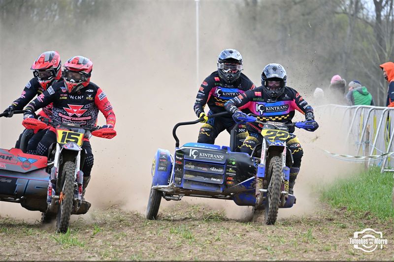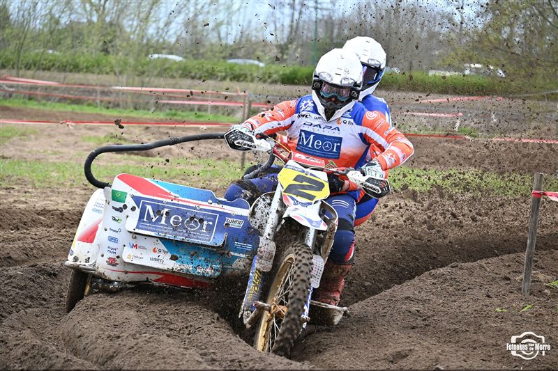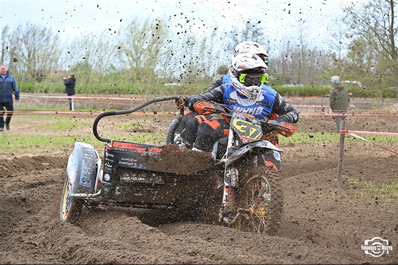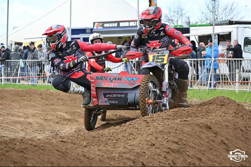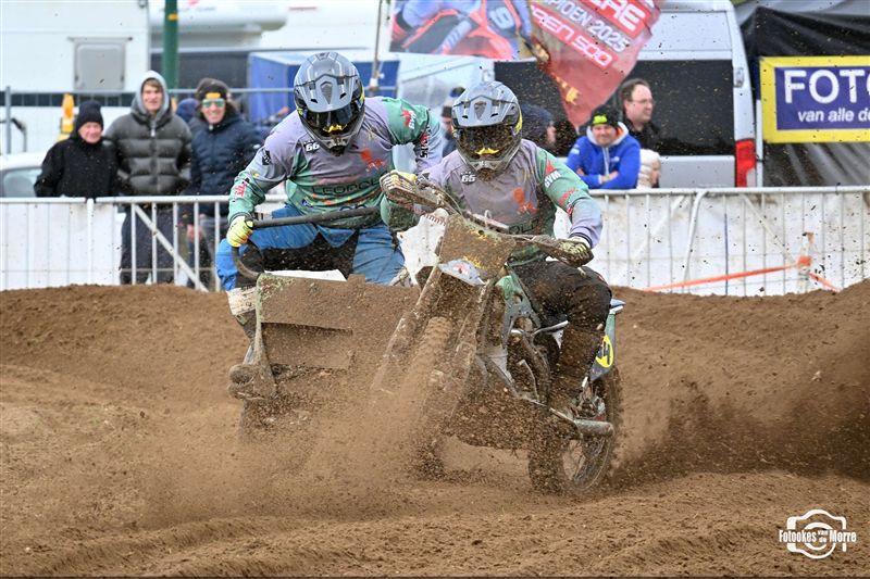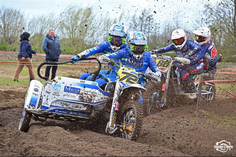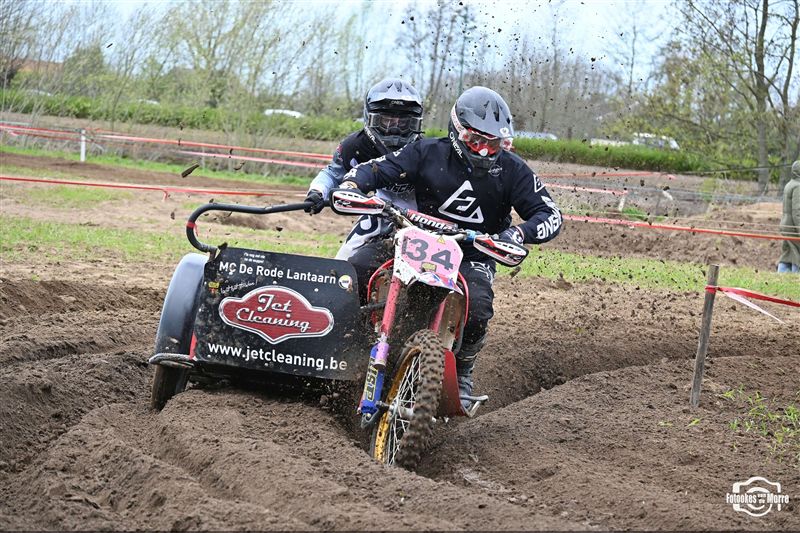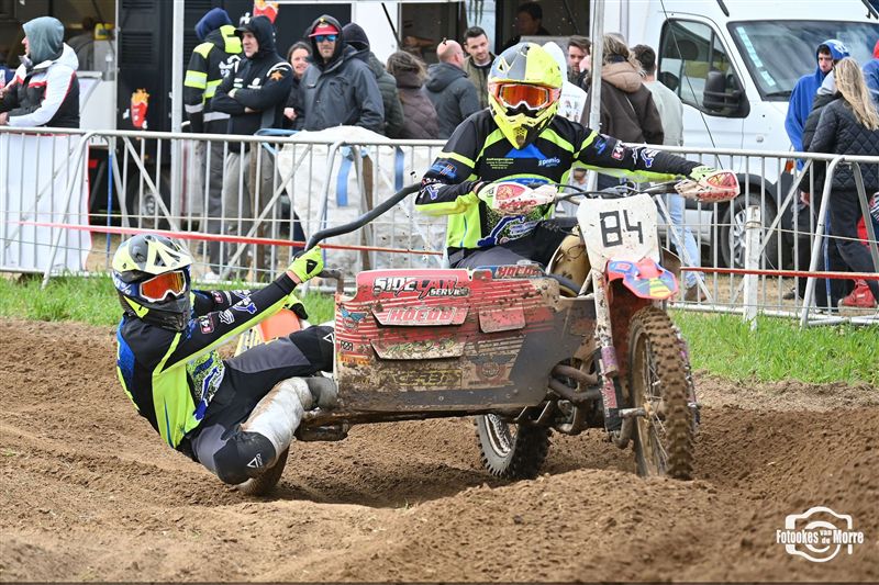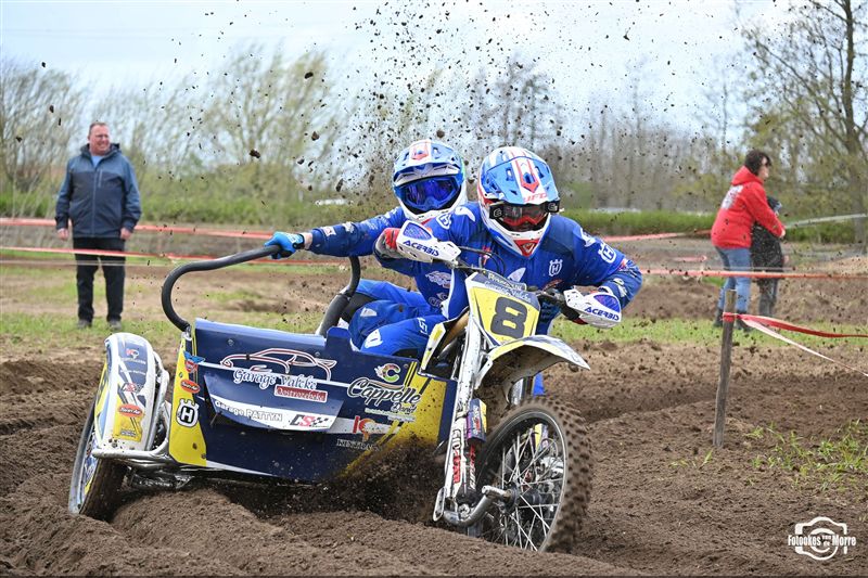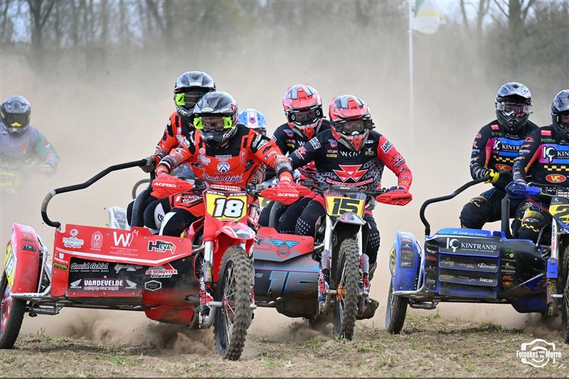 Met achttien sidecars was het starthek opnieuw goed gevuld tijdens de zijspanreeksen in Evergem, waar MCLB-club MX Evergem zorgde voor een bijzonder verzorgde organisatie op Paaszondag. Na van Grembergen-Hoste en Demuynck-Sabbe, kregen we voor de derde keer op rij een andere winnaar in de MCLB A-categorie, wat nog maar es onderstreept hoe spannend het er momenteel aan toe gaat. Van Malderen-Spannenburg , op jacht naar hun eerste seizoenszege, voerden aanvankelijk het veld aan in het zanderige Evergem, maar een kleine valpartij deed de Oostvlamingen terugvallen naar plek drie. Bjorn De Schuyter en Mathis Lareu namen gezwind de koppositie over en wonnen finaal met miniem verschil voor Van Grembergen-Hoste en de recht gekrabbelde Van Malderen-Spannenburg. Kjentl en Kjell Hereygers wisten ondanks een slechte start, terug te knokken naar plek vier, en werden daarmee snelste B-rijders, net voor hun collega’s Degeldere-Hoste, die in de herneming later op de dag ten val kwamen. Bert Soetaert en Loid Bekaert kaapten bij hun comeback de zesde plaats weg.