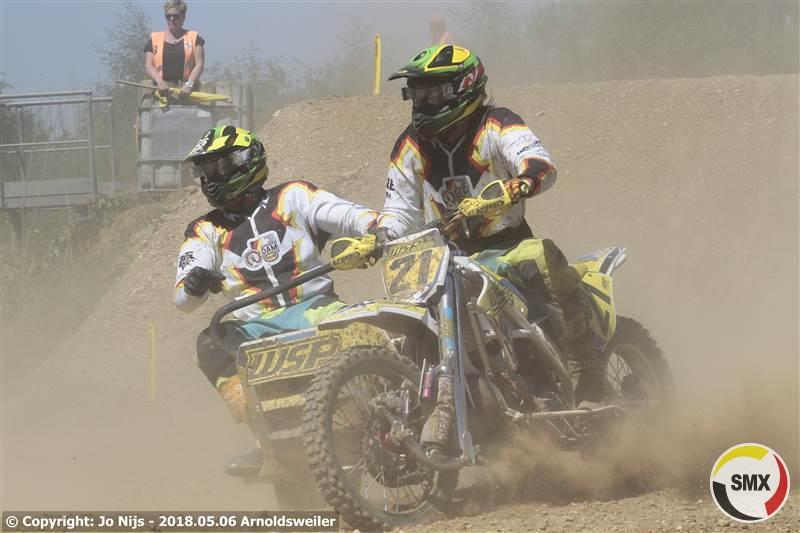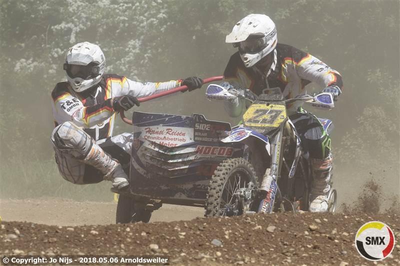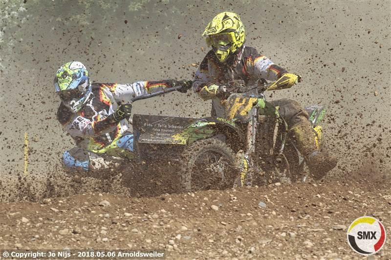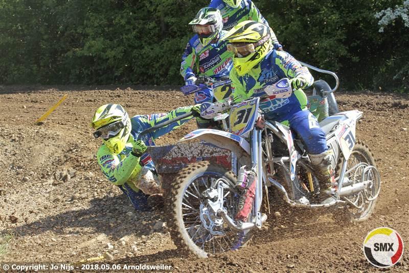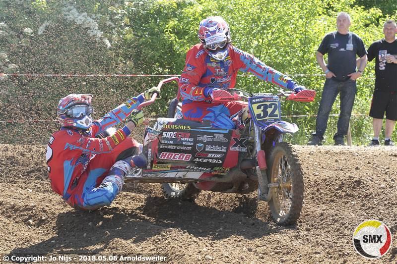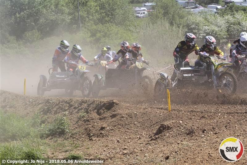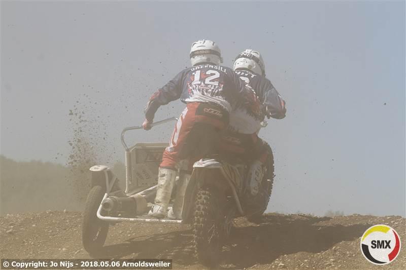 De eerste reeks had al wat slachtoffers gemaakt en ze stonden nog met 25 aan de start van de tweede reeks, voor Belgen gelukkig alle zes. Nu kwamen Tim Prümmer & Tobias Lange als snelsten weg voor Frank Mulders & Henry Van De Wiel en de rest van de meute. Doch we kregen een rode vlag te zien. Er was immers een toeschouwers geraakt door een een weggeslingerde steen die de man vol op hoofd trof. De hulpdiensten waren dan van de trage kant en stonden ook onoordeelkundig opgesteld en zodoende moest dus die rode vlag getrokken worden zodat de ziekenwagen het circuit kon kruisen. Nog wat meer achterstand op het tijdschema was het gevolg. In de herstart opnieuw Tim Prümmer & Tobias Lange als snelsten weg voor Frank Mulders & Henry Van De Wiel, Davy Maris & Aivar Van De Wiel en Marco Boller & Marius Strauss. Na de eerste ronde hadden Mulders & Van De Wiel de leiding al overgenomen en ze zouden niet echt bedreigd meer worden. Na vijf ronden wedstrijden kwamen Mike Keuben & Lars De Laat postvatten op de tweede plaats komende van zeven maar meer zat er echt niet in. Onze kopstarters Tim Prümmer & Tobias Lange hielden goed stand op de derde plaats. Hoe Boller & Strauss ook aandrongen bij de Duitsers het mocht niet baten en dus was de vierde plaats voor hun. Thom Van De Lagemaat & Andy Schlinnertz reden een vlakke reeks die hun de vijfde plaats opleverde. Ook een vrij vlakke reeks voor Davy Maris & Aivar Van De Wiel die ondanks hun terugvallen van drie naar zes enigsinds gemakkelijk die plaats behielden. Ook voor de Fransen Laurant Relandau & Nicolas Guitteny werd het een vrij vlakke reeks. Ze gingen in de eerste ronde van acht naar zeven en daar bleven ze. Onze tweede landgenoten waren Christof Van Der Veken & Dave Gorris die de achtste plaats inpalmden. Bram Van Dijk & Loet Van Der Putten die bij de eerste passage als de nummers vijf werden genoteerd vielen in eerste instantie terug naar de elfde plaats om vervolgens toch terug een beetje op te klimmen tot de negende. Op tien een ander Zwitsers team met Ronny Gloor & William Leutwyler die vanaf de veertiende plaats kwamen. Onze andere Belgen dan: op 14 vanaf 11 Luc Descheemaeker & Dylan Delannoy, op 15 Sepp Gommeren & Danny Meus vanaf 13, Jeroen Tesseur & Ben Martens werden genoteerd op de 22ste plaats en op een 24ste Peter Van Roy & Ruben Van Mol die aan de kant moesten nadat Ruben in de rug werd aangereden.