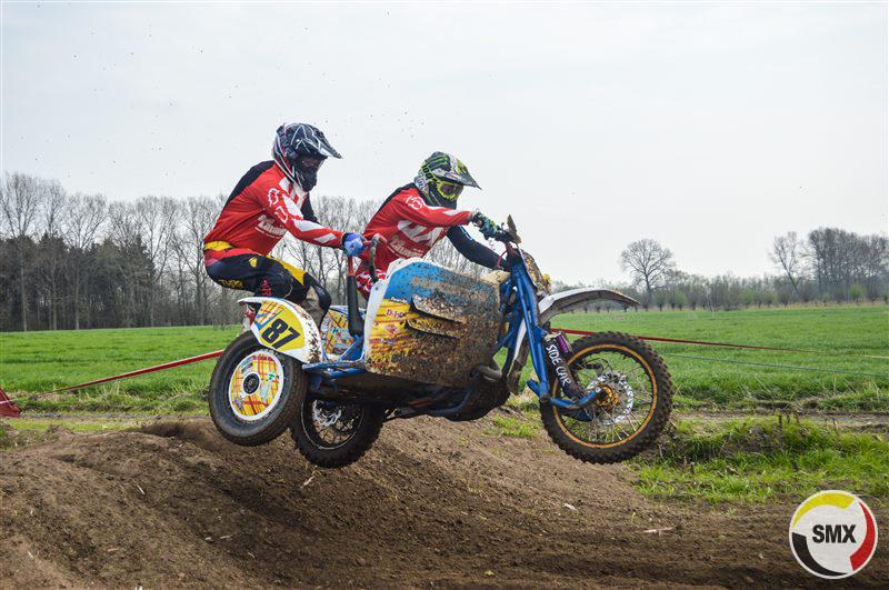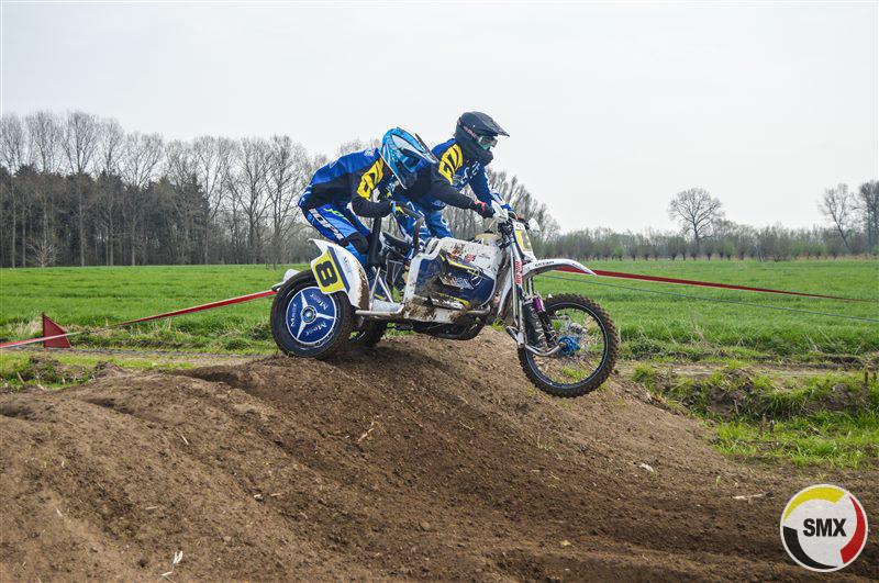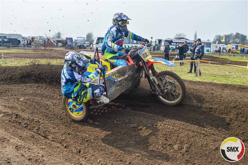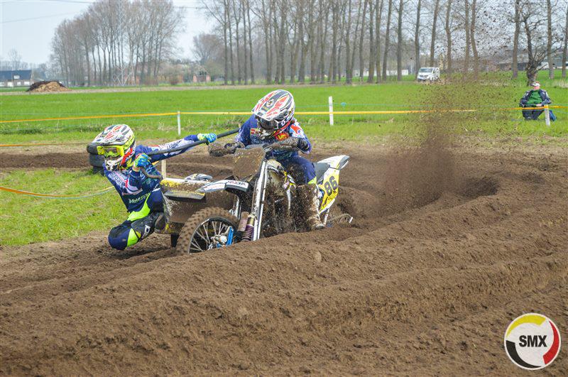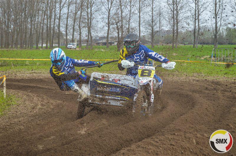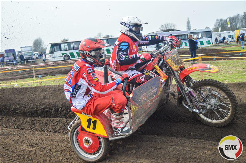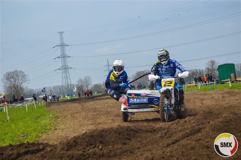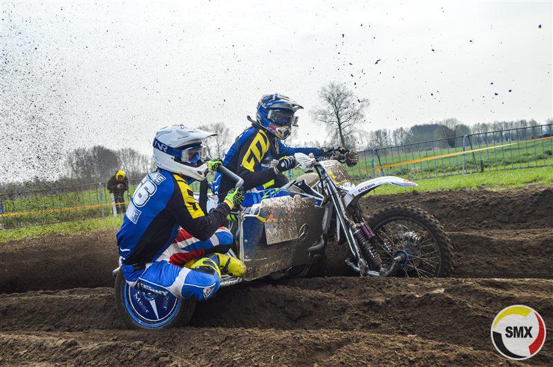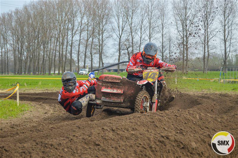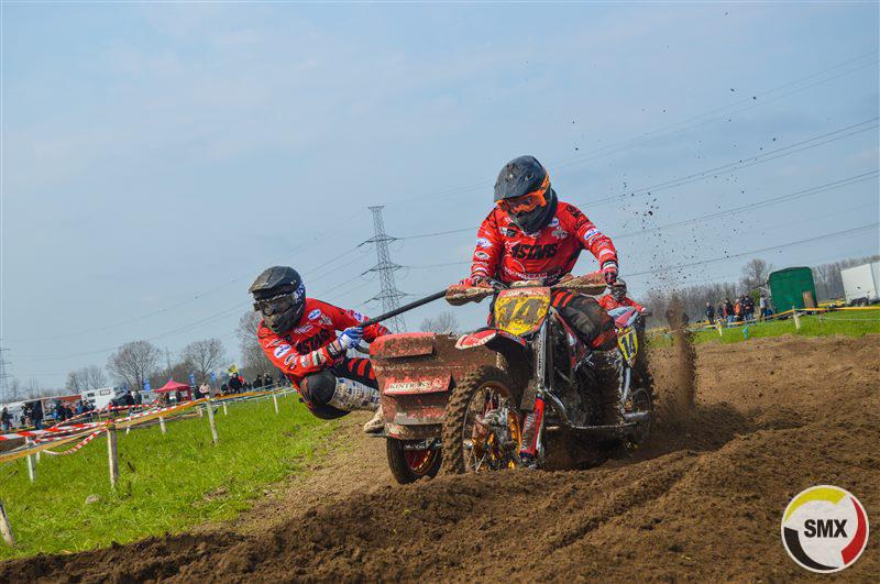 De groen witte federatie mocht veertien sidecaristen verwelkomen. Lokale mannen De Cock-Stadeus dienden nog steeds verstek te geven. In de A-categorie viel er niet te tornen aan kampioen Bert Soetaert, die met zijn nieuwe passagier Gianni Dhondt beide manches op zijn naam schreef. Sven Siongers, pas overgekomen van de B-klasse, wist beide keren – geassisteerd door Dagwin Sabbe – op plek twee aardig in de buurt te blijven. Met een vierde een derde plaats mochten Kenneth Dierckens en Joey Valcke mee naar het dagpodium. Delmotte-Verbrugghe, die de twee eerste MCLB-wedstrijden van het nieuwe seizoen hadden gewonnen, werden nu vierde. In de B-klasse lijkt Arne De Meulemeester een flinke stap voorwaarts te hebben gezet. Samen met Michael Dhondt scoorde De Meulemeester een zesde en een vijfde plek, wat volstond voor de dagzege in de B-categorie, voor de dames Colleen van Troys – Jitske de Soete, en Jan Ampe – Nzelo Hoste, die hun eerste podium wisten te versieren.