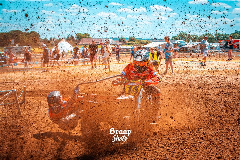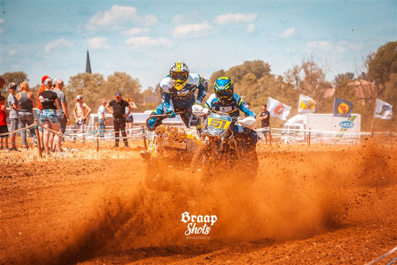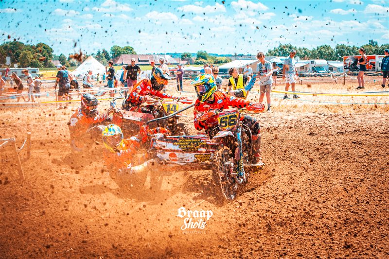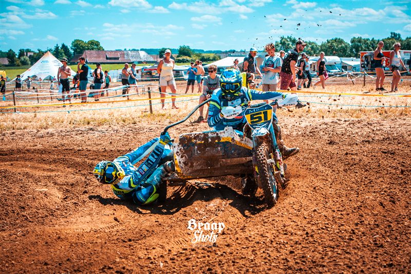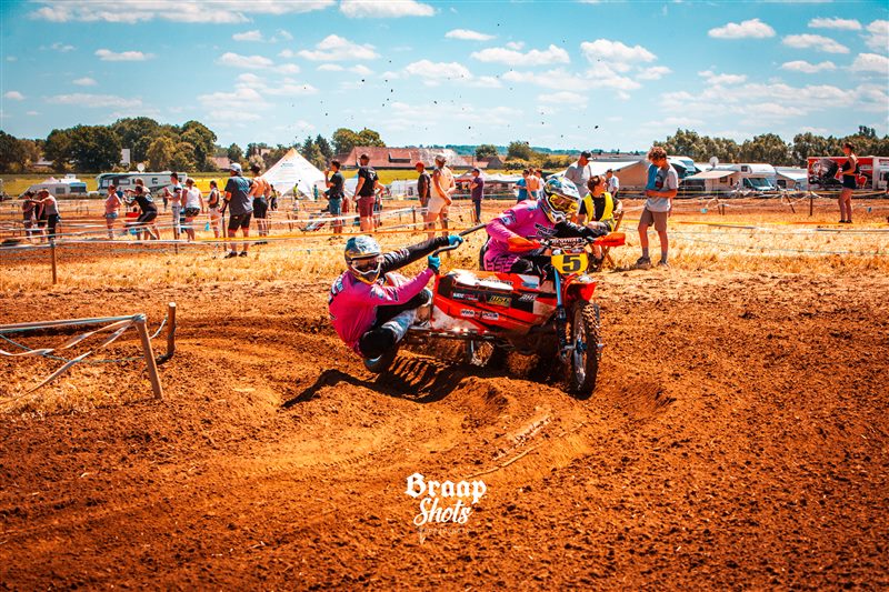 Uitzonderlijke situatie afgelopen zondag aan de rand van de Zwalmstreek, waar slechts zeven zijspannen kwamen opdagen , en men er dan maar een gemengde wedstrijd Quads/Sidecars van maakte. Een wedstrijd in de wedstrijd dus, die in de eerste manche uitmondde in een spannend duel waarin Maxime van der Haeghen-Frederic van de Voorden nipt de bovenhand hielden op Kenneth Dierckens-Joey Valcke. De broers Moenaert toonden zich opnieuw de snelste B-equipe.