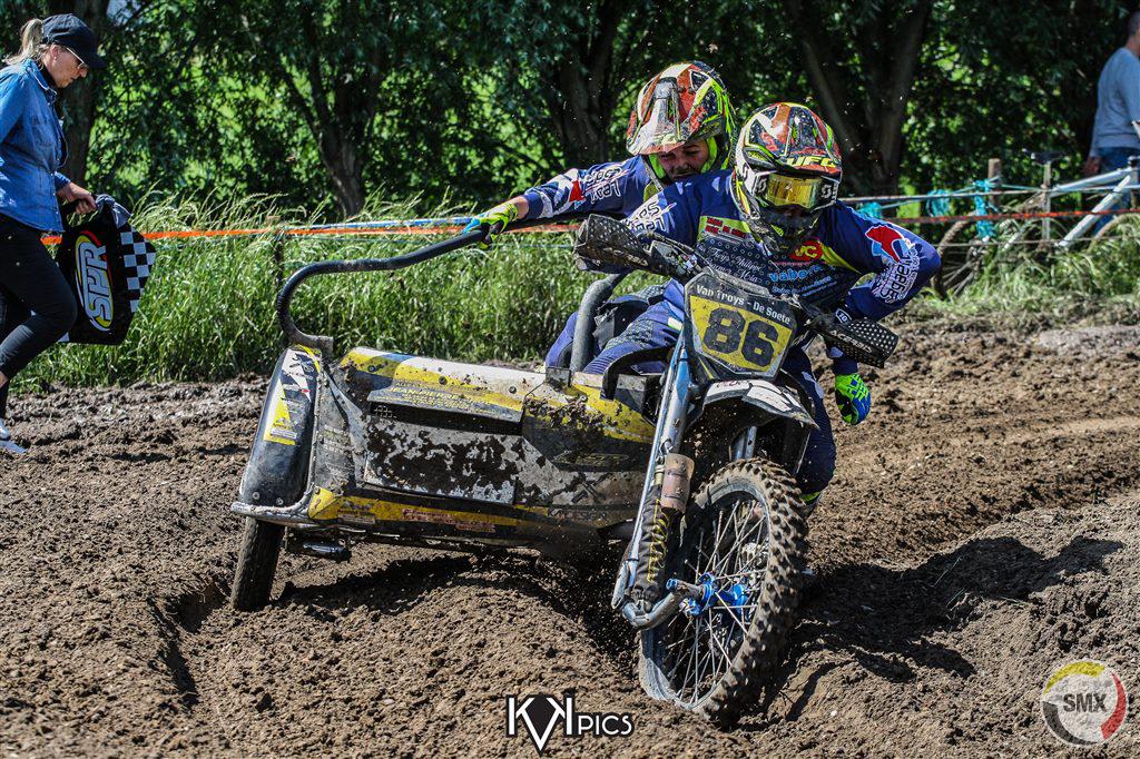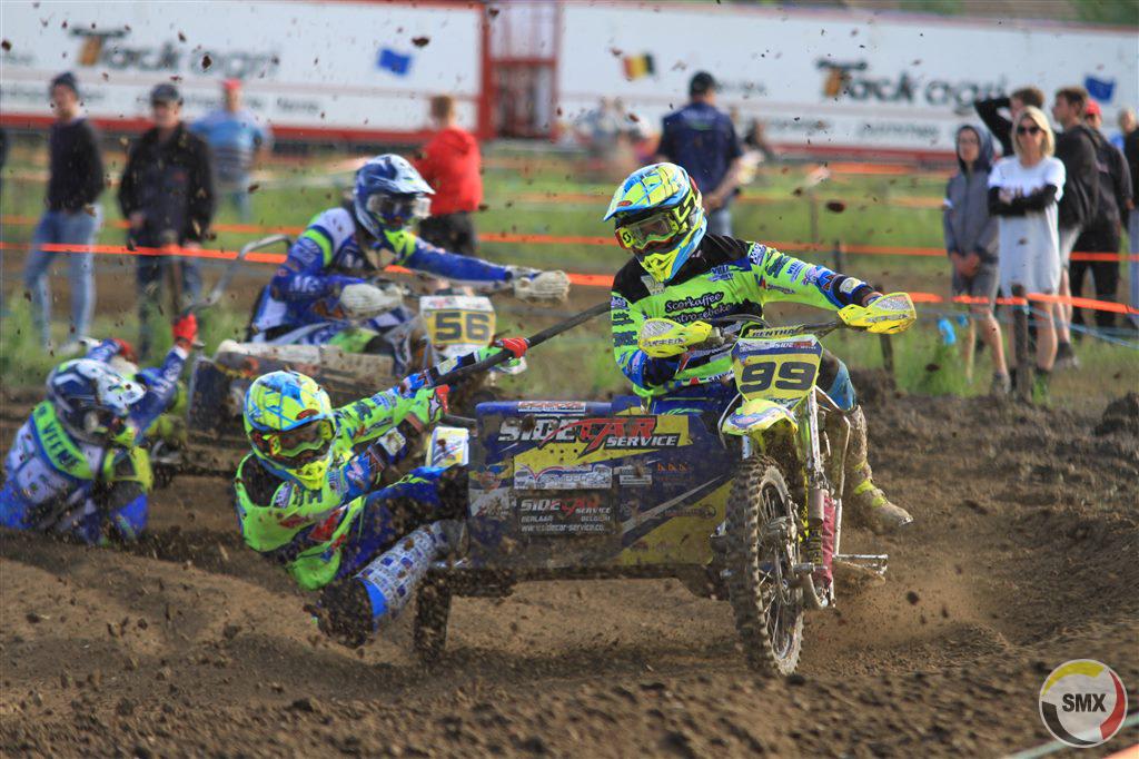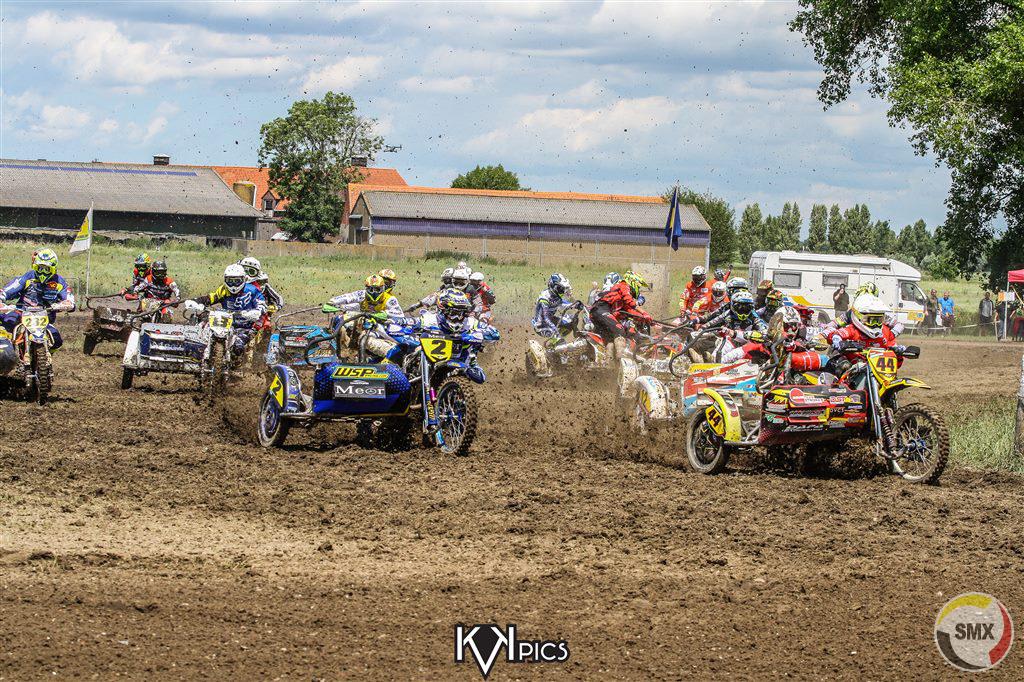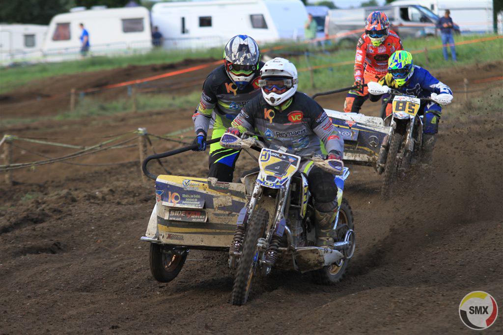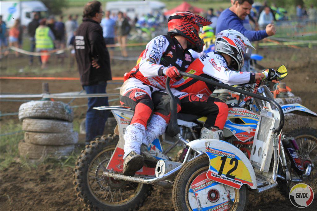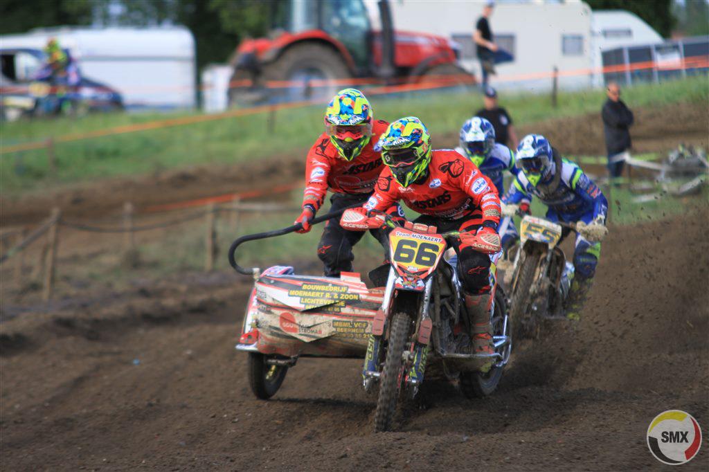 MC De Bangermannen hadden er de handen vol mee in Tielt. Een zaterdag met hevige regenval zorgde er voor dat het voor de jeugd een zwaar karwei werd, en er op zaterdagavond met man en macht aan het circuit diende gewerkt te worden om alles weer piekfijn klaar te krijgen voor de zondagochtend. Het harde werk loonde. Op een enkele bui na viel er ’s zondags geen regen meer, en lag het circuit er in prima conditie en stofvrij bij. Vierentwintig zijspannen verschenen aan de start, waarmee de organisatoren loon naar werken kregen. Vanuit VLM waren Van der Schraelen-van Gennip naar het Westvlaamse Tielt afgezakt. Ervaringsdeskundigen Frank Degroodt-Bart Verbrugghe trokken nog es het crossplunje aan. Sven Verbrugge kwam terug uit kwetsuur en had Birgen Beernaert bij, die enkele dagen daarvoor de wereld had verbaasd door samen met Jason van Daele te zorgen voor de allereerste sidecar backflip ever. Sven Siongers deed het met invaller Niels Wesselink. Kelly Debruyne kwam nog es haar B-kampioenentrui van vorig jaar showen. Yens Delmotte trad aan op reservemateriaal, en Kenneth Dierckens, Arne De Meulemeester en Kim De Cock waren de opvallendste afwezigen , die aan recuperatie toe waren met het oog op de tweede seizoenshelft en de nog resterende kampioensproeven.