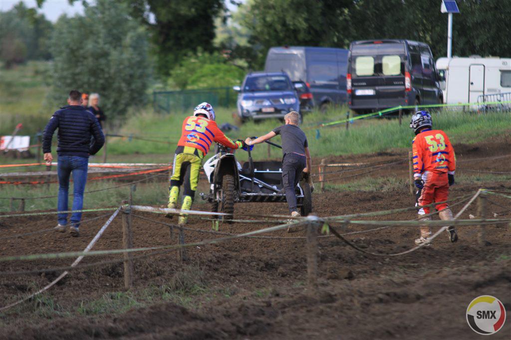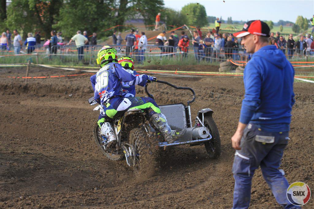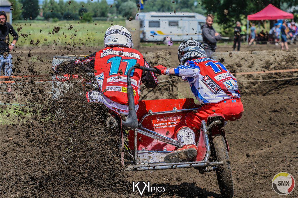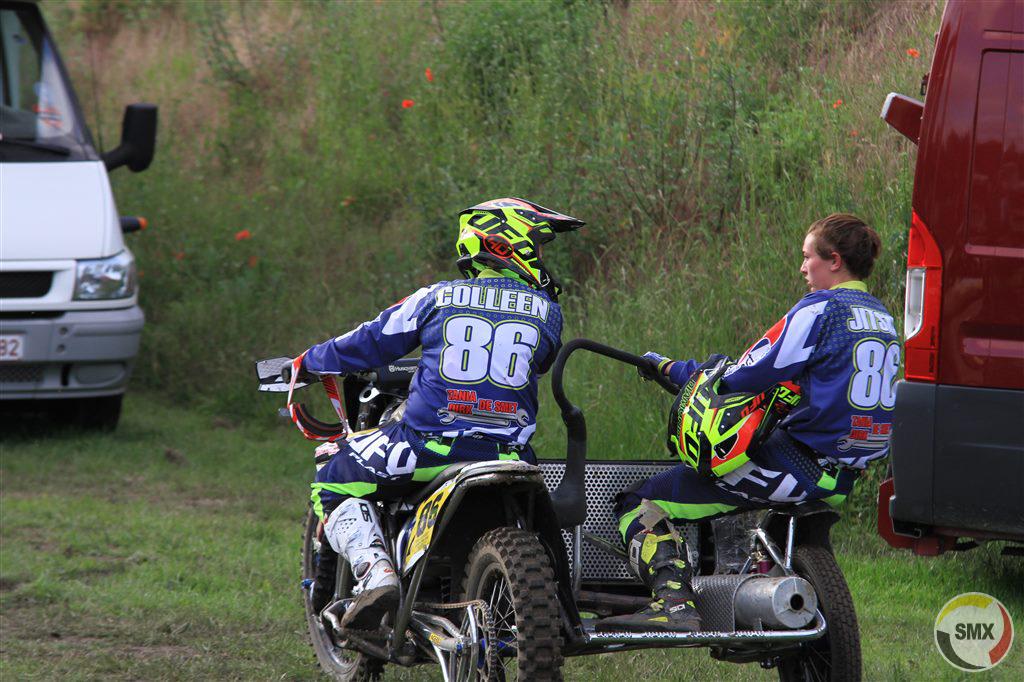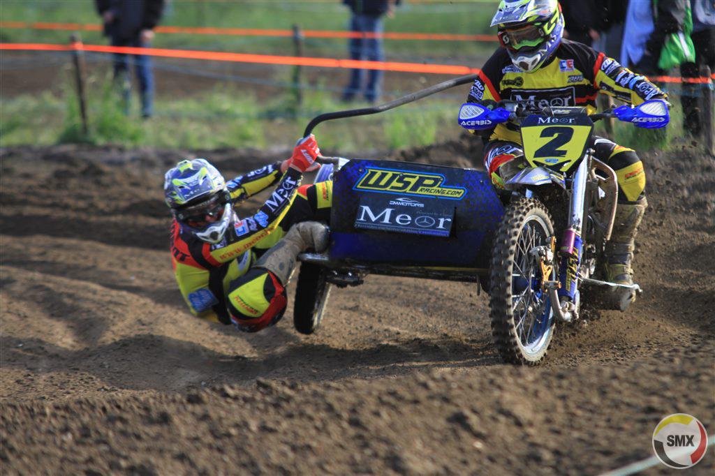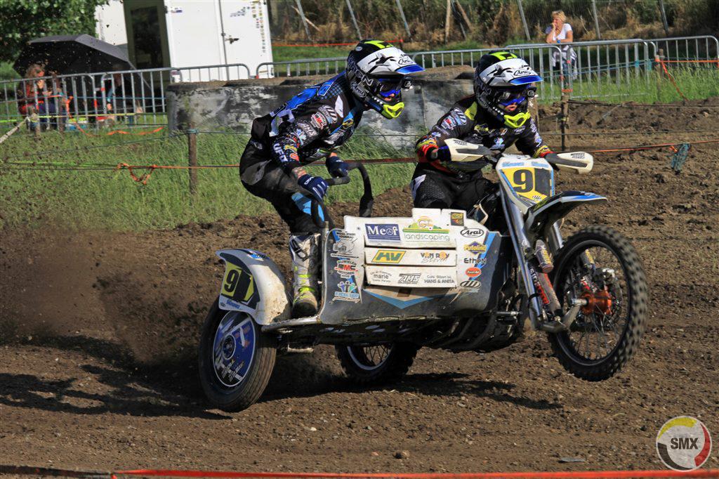 MC De Bangermannen hadden er de handen vol mee in Tielt. Een zaterdag met hevige regenval zorgde er voor dat het voor de jeugd een zwaar karwei werd, en er op zaterdagavond met man en macht aan het circuit diende gewerkt te worden om alles weer piekfijn klaar te krijgen voor de zondagochtend. Het harde werk loonde. Op een enkele bui na viel er ’s zondags geen regen meer, en lag het circuit er in prima conditie en stofvrij bij. Vierentwintig zijspannen verschenen aan de start, waarmee de organisatoren loon naar werken kregen. Vanuit VLM waren Van der Schraelen-van Gennip naar het Westvlaamse Tielt afgezakt. Ervaringsdeskundigen Frank Degroodt-Bart Verbrugghe trokken nog es het crossplunje aan. Sven Verbrugge kwam terug uit kwetsuur en had Birgen Beernaert bij, die enkele dagen daarvoor de wereld had verbaasd door samen met Jason van Daele te zorgen voor de allereerste sidecar backflip ever. Sven Siongers deed het met invaller Niels Wesselink. Kelly Debruyne kwam nog es haar B-kampioenentrui van vorig jaar showen. Yens Delmotte trad aan op reservemateriaal, en Kenneth Dierckens, Arne De Meulemeester en Kim De Cock waren de opvallendste afwezigen , die aan recuperatie toe waren met het oog op de tweede seizoenshelft en de nog resterende kampioensproeven.