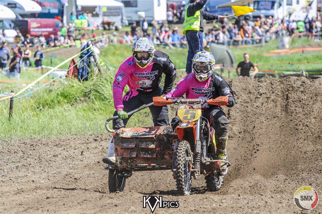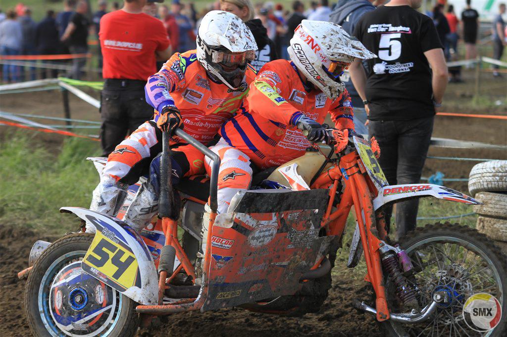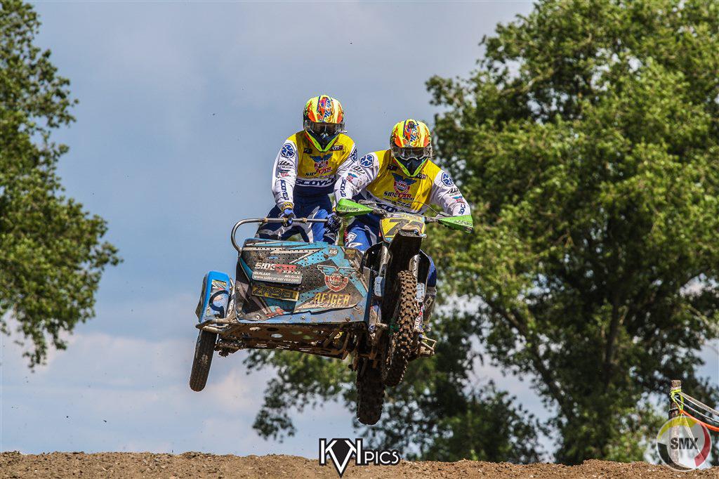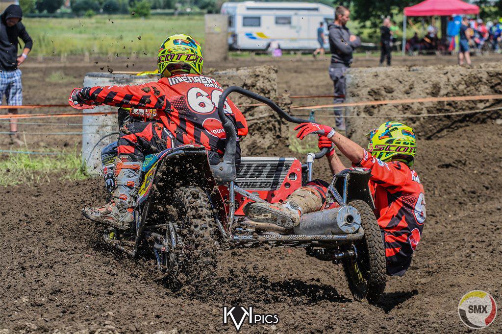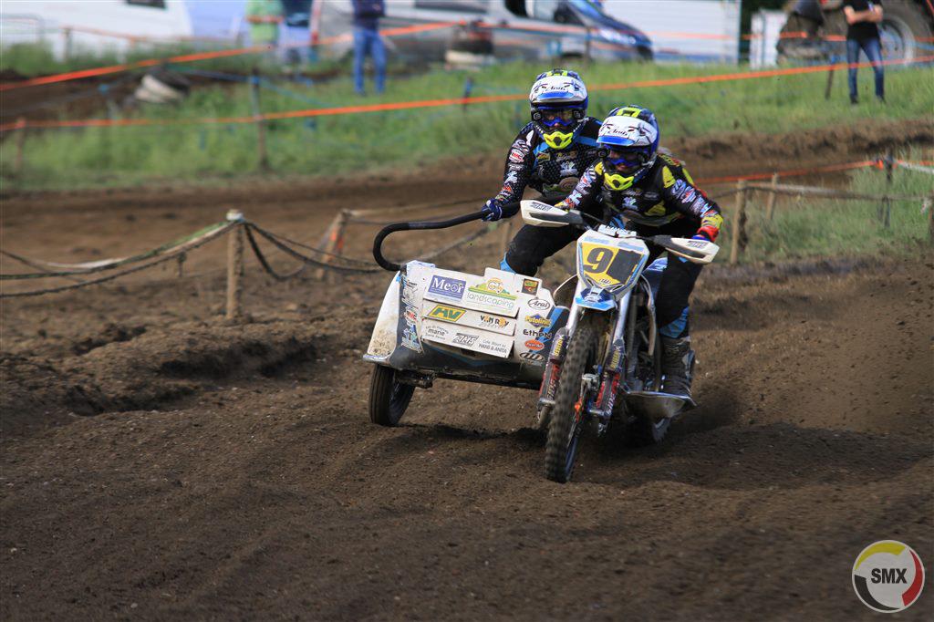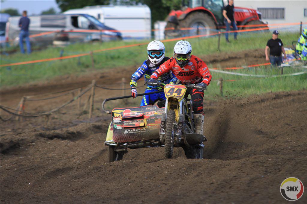 MC De Bangermannen hadden er de handen vol mee in Tielt. Een zaterdag met hevige regenval zorgde er voor dat het voor de jeugd een zwaar karwei werd, en er op zaterdagavond met man en macht aan het circuit diende gewerkt te worden om alles weer piekfijn klaar te krijgen voor de zondagochtend. Het harde werk loonde. Op een enkele bui na viel er ’s zondags geen regen meer, en lag het circuit er in prima conditie en stofvrij bij. Vierentwintig zijspannen verschenen aan de start, waarmee de organisatoren loon naar werken kregen. Vanuit VLM waren Van der Schraelen-van Gennip naar het Westvlaamse Tielt afgezakt. Ervaringsdeskundigen Frank Degroodt-Bart Verbrugghe trokken nog es het crossplunje aan. Sven Verbrugge kwam terug uit kwetsuur en had Birgen Beernaert bij, die enkele dagen daarvoor de wereld had verbaasd door samen met Jason van Daele te zorgen voor de allereerste sidecar backflip ever. Sven Siongers deed het met invaller Niels Wesselink. Kelly Debruyne kwam nog es haar B-kampioenentrui van vorig jaar showen. Yens Delmotte trad aan op reservemateriaal, en Kenneth Dierckens, Arne De Meulemeester en Kim De Cock waren de opvallendste afwezigen , die aan recuperatie toe waren met het oog op de tweede seizoenshelft en de nog resterende kampioensproeven.
