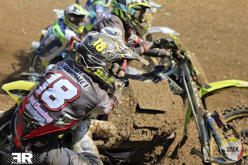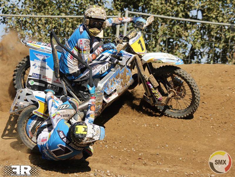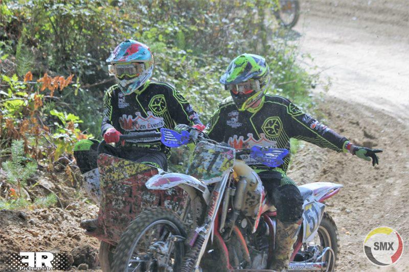 Janssens-Gorris, Vanluchene-vd Bogaart en Van Vaerenbergh-Mans waren de eerste achtervolgers. Vanluchene-vd Bogaart maakten er – met het oog op de Sidecarcross of Nations die binnen twee weken nog op het menu staat – een doorgedreven training van, en wonnen met driekwart minuut voorsprong op Corthouts-Hoffmans die zich vanaf plek negen een weg naar voor hadden gebaand. De nieuwe VLM-kampioenen Janssens-Goris werden derde, met Vaes-Horijon en Van Calster-Vanhamel in het spoor. Snelstarters Descheemaecker-Raskin werden zesde. Zelfde scenario en zelfde winnaars in heat twee, waarin Van Calster-Vanhamel zich dit keer, na een snelle start, als tweede manifesteerden, voor Corthouts-Hoffmans, Janssens-Gorris en Van Vaerenbergh-Mans. Op het dagpodium werden Vanluchene-vd Bogaart vergezeld door Corthouts-Hoffmans en Van Calster-Vanhamel die nipt de derde plek afsnoepten van de VLM-kampioenen 2019 Nick Janssens en Dave Gorris. Vanluchene-vd Bogaart deden een reuzezaak in de strijd om de Belgische titel zijspancross 2019, en kunnen met een gerust gemoed volgend weekend richting BK-finale afzakken in het Westvlaamse Deerlijk.