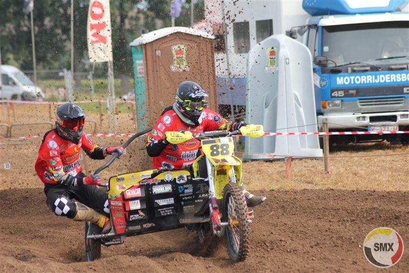 Negen teams kwamen opdagen in Broechem-Ranst,alwaar de Stroeckx-vrienden opnieuw zorgden voor een top organisatie. Tegen de start van reeks één waren ze nog met acht, Goeyvaerts-Smeuninx kwamen niet meer in actie. Jimmy Vaes trad aan met invaller Yann Hereygers Tweevoudig wereldkampioen MX3, Sven Breughelmans verscheen aan de start met Kenny van de Plas als ervaren bijrijder. In de eerste heat leken Nick Janssens en Dave Gorris op weg naar reekswinst, tot zij met nog twee ronden te gaan motorpech kenden. Een kans die Jimmy Vaes en Yann Herygers niet liggen. Sven Breughelmans,die in ’t verleden al vaker te spotten was op een sidecar, werd op een halve minuut tweede. Daarna was het even wachten op Luc van de Plas en Dennis Derboven die derde werden. In de tweede manche waren Janssens en Gorris duidelijk op wraak belust.