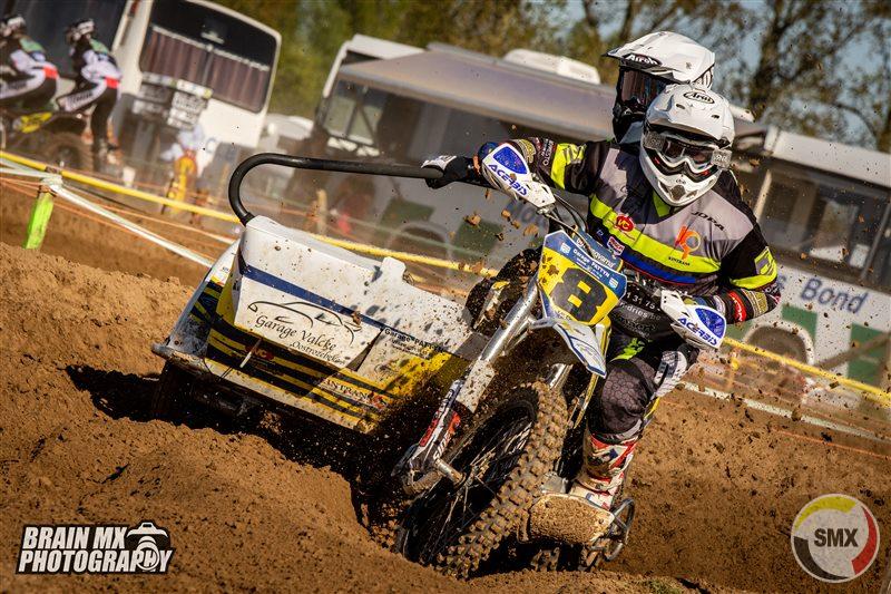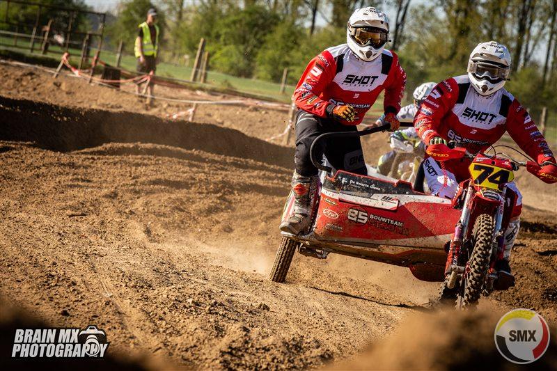 Op Paasmaandag stonden zeven sidecars achter het starthek. Coen-van Roy deden op hetzelfde elan verder,en schreven de openingsheat op hun naam,voor Sepp Gommeren die nu werd geassisteerd door Danny Meeus. Erwin Mogal-Michael Verburgh liepen als derde binnen,voor Fransis-Fontaine. Voor S. Coen – W. van Roy zathetvenijn ‘m echter in de staart,want in de slotheat vielen ze vooraan weg met motorpech. De zege voor Gommeren-Meeus lag nu breed open. E. Fransis – J. Fontaine werden tweede, E. Mogal-M. Verburgh derde. Dit was meteen ook de eindstand op dag twee. De Paastrofee (over de twee dagen) was voor Sepp Gommeren en Danny Meeus, hoewel op zondag uiteraard ook Kjell Hereygers hier zijn deel in had. Pechvogels Stefan Coen en Wim vanRoy werden tweede. Erwin Fransis-Joeri Fontaine waren een gelukkige derde overall. Langs deze weg richten we graag nog es een oproep naar een VMCF zijspan geïnteresseerde die ons op zondagavond,of in de loop van de maandag telkens van foto’s van de zijspanwedstrijden kan voorzien,want bij www.sidecarcross.be staat .be uiteraard voor al onze Belgische –be – zijspancross-federaties . Komende zondagis VMCF aan de slag in Gierle. De groen witte MCLB federatie trekt dan naar het Oostvlaamse Laarne.