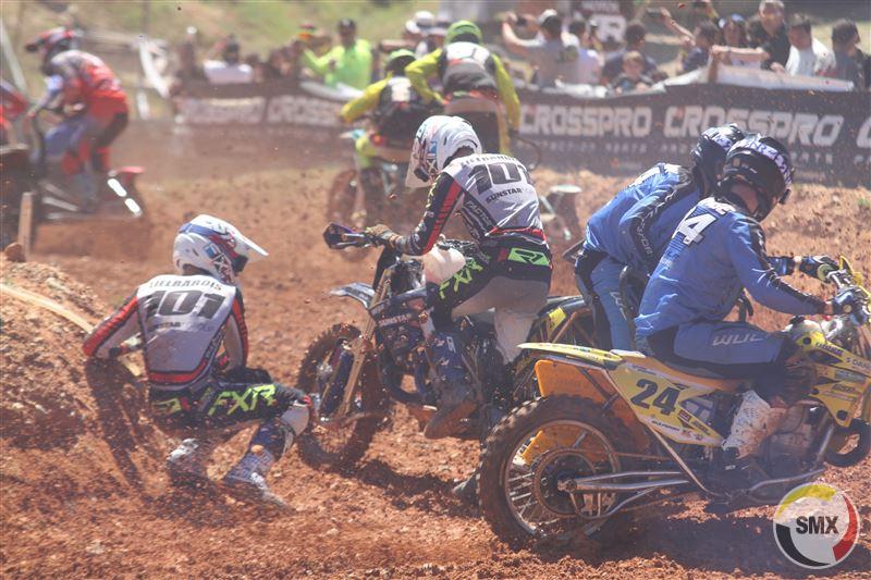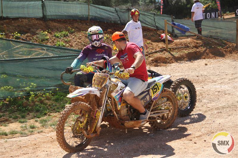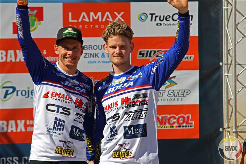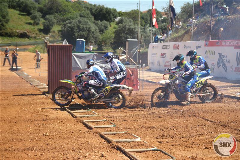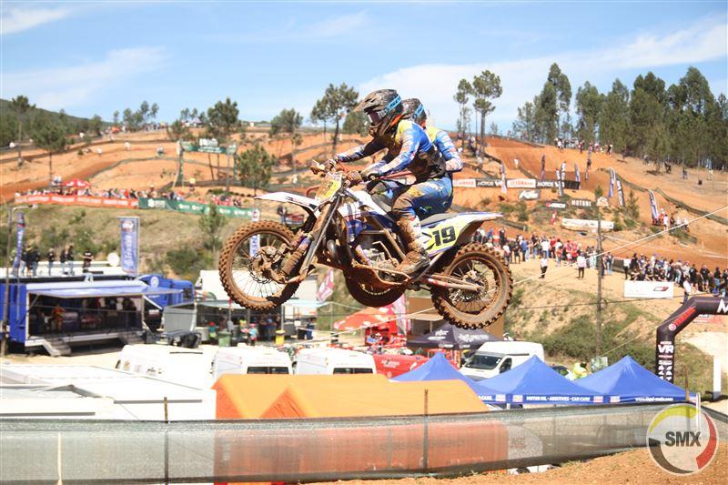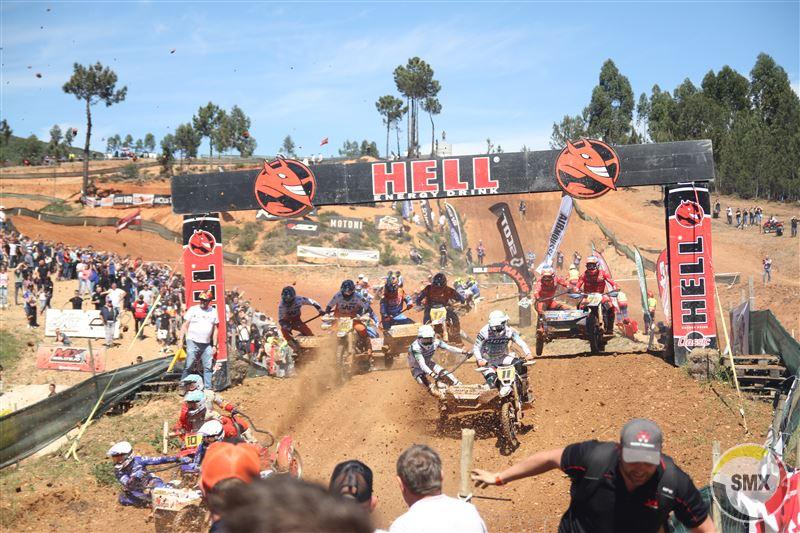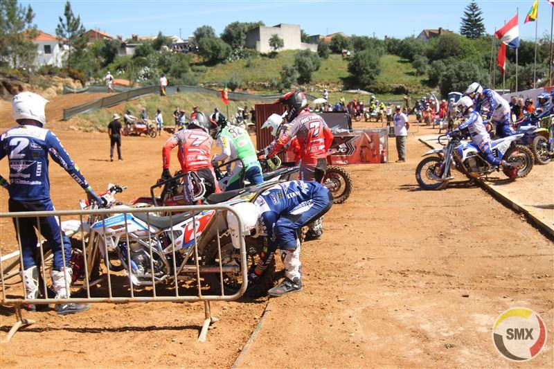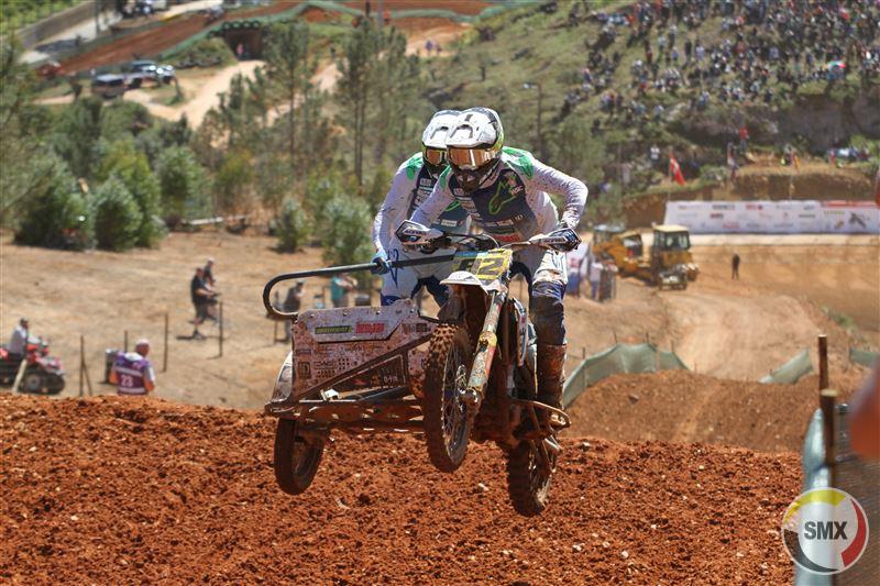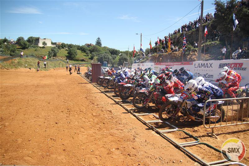 In Portugal werd terug het normale tijdschema gehanteerd en om kwart over één viel het starthek een eerste keer. Net als vorige week in Spanje straalde de zon opnieuw in al haar glorie aan de felblauwe hemel. Er was flink wat volk afgezakt naar de Crossodromo José Henrique Carvalho en die zagen Vanluchene-Musset opnieuw meteen langs de binnenzijde naar de koppositie glippen voor Bax-Cermak, Van Daele-Beleckas, Heinzer-Betschart en Hermans –vdBogaart. Sanders-Rostingt bleven steken achter het starthek net als Wisselink-Vincent die er vlak achter stonden. Lielbardis kwam ten val in de eerste bocht en daardoor werden ook Keuben-Rietman veroordeeld tot een helse achtervolging. De goed gestarte Prümmer-Steegmans moesten al na één ronde afkloppen met een sputterende motor, en reden nog enkele ronden verder, met de moed der wanhoop weliswaar. Ook Gordejev-van de Wiel vielen al na een paar ronden weg, met vermoedelijk een gebroken pols voor de Estse rijder.