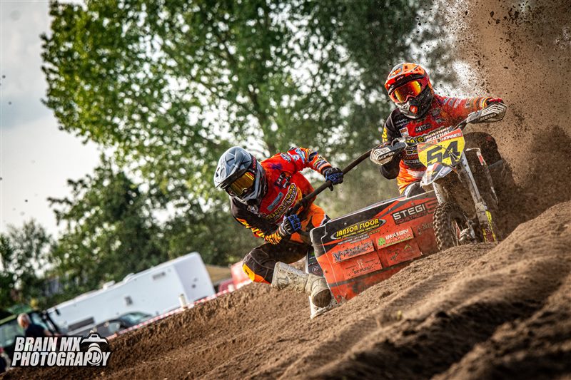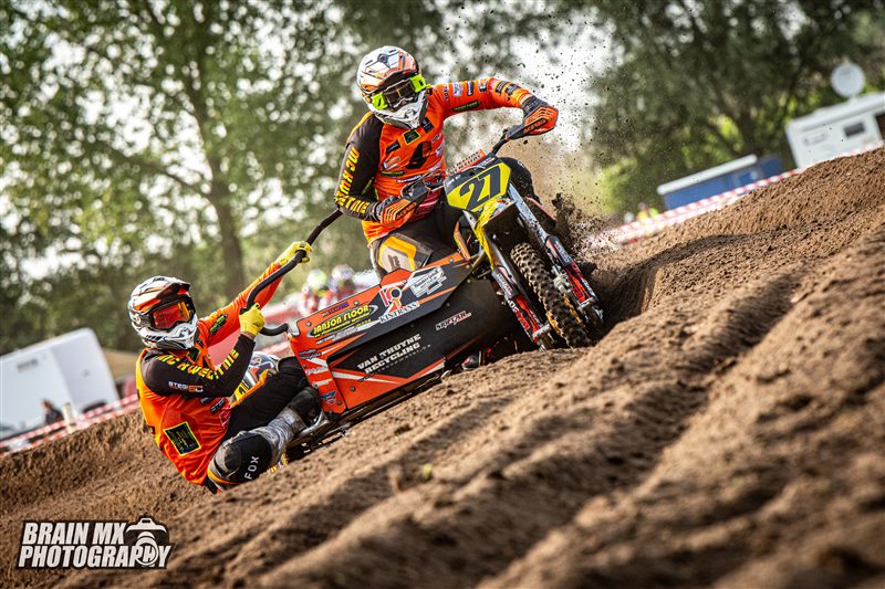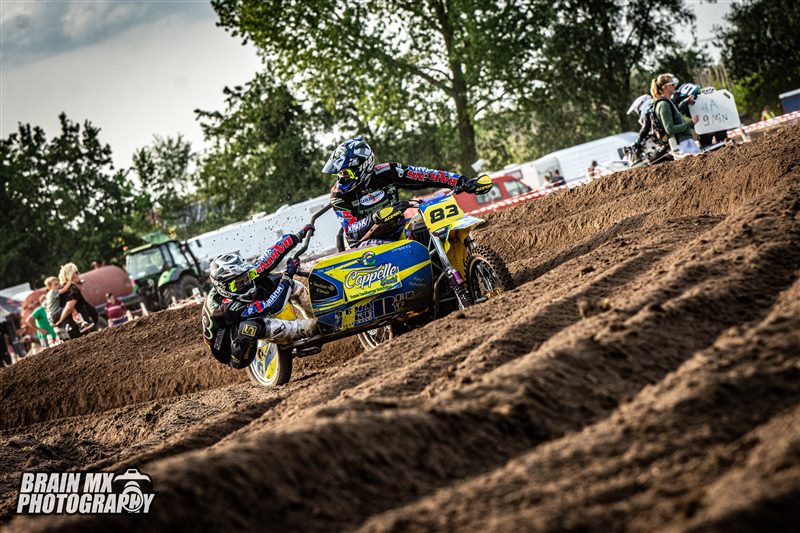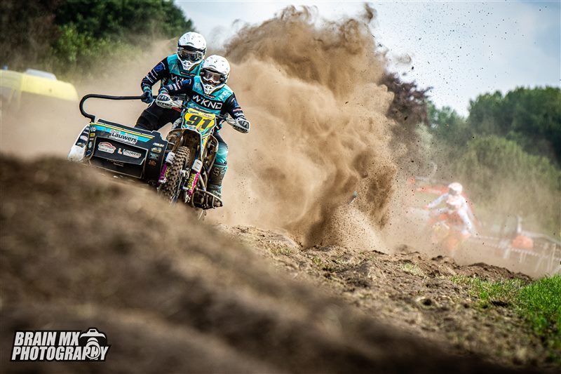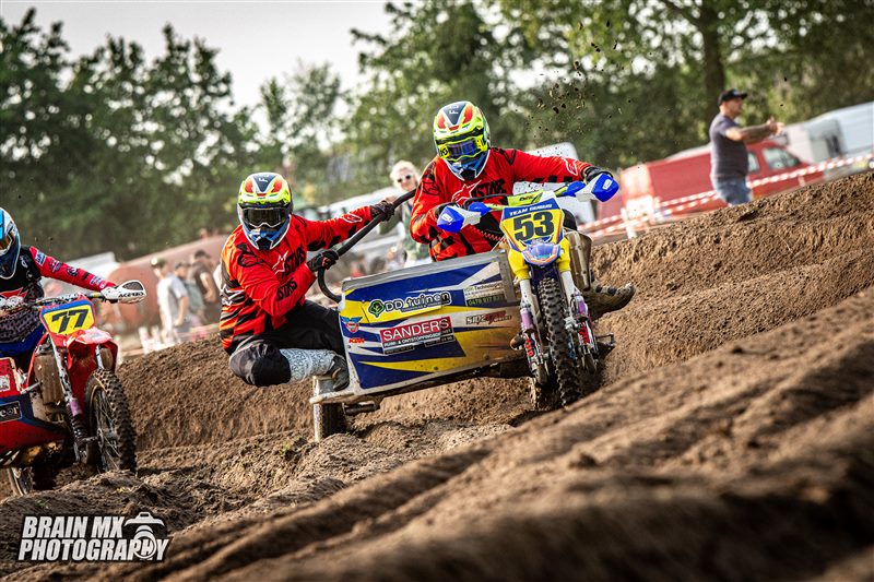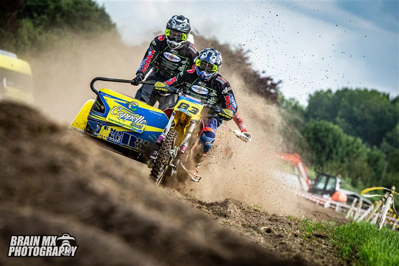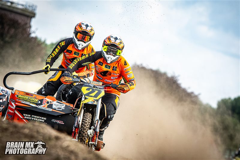 Het zijn drukke tijden voor onze nationale MCLB-sidecaristen,met drie wedstrijden in acht dagen tijd. In het Oostvlaamse Zele gisteren, verscheen een mooi pelotonnetje van twintig sidecars achter het starthek. Met een gelukje slaagden Bert Soetaert en Loid Bekaert er in de eerste manche in om de overwinning te pakken voor de neus van Verhelst-Sabbe die lang de race hadden geleid. Van Grembergen-Hoste volgden van kortbij op drie. Lauwers-Lobry waren op plek vijf, de beste B-rijders. De tweede reeks lieten Verhelst & Sabbe zich niet meer verrassen en wonnen met ruime voorsprong voor Soetaert-Bekaert en Van Grembergen-Hoste ,wat meteen ook het dagklassement was. Lauwers-Lobry waren opnieuw de betere B-rijders,en finishten vlak achter Kendric van Grembergen, opgejaagd door De Ceuninck-Hoste, Van den Plas-Spannenburg , en De Schuyter-Lareu die allen binnen een handvol seconden voorbij de finish stoven. Lauwers-Lobry waren de onbetwiste dagwinnaars,voor De Ceuninck-Hoste. Regelmaat loonde voor Colleen van Troys die derde overall werd. Onze man in het veld Brain, maakte van de nood een deugd en gebruikte de grote stofwolken in zijn voordeel om er prachtige,kunstzinnige foto’s van te maken.