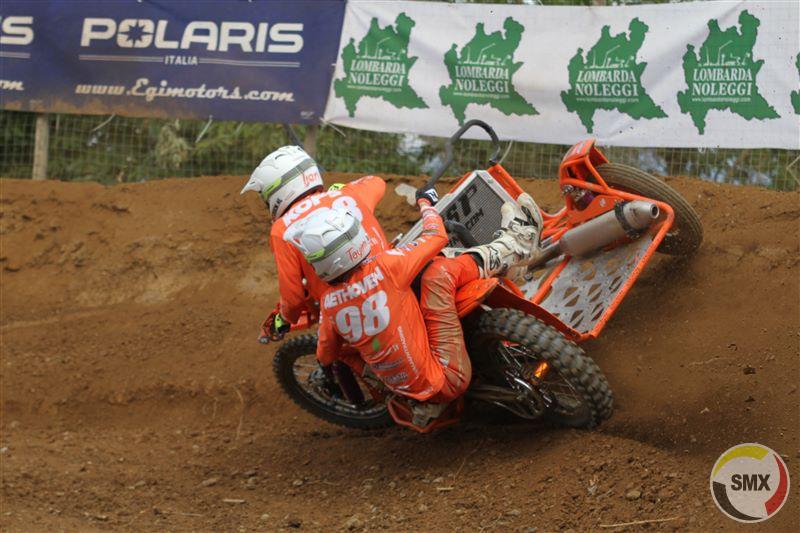 Twee groepen van elk veertien equipes reden vanochtend elk een tijdstraining om de startvolgorde te bepalen. De besttijden van de toppers lagen dicht bij mekaar,want zowel in groep A als in groep B zat er tussen de top vijf amper een seconde verschil. De Prunier-broers waren de snelsten in de A-groep en mogen straks als eerste hun plekje achter het starthek kiezen. Hermans-van den Bogaart die de snelsten waren in de andere groep,rijden als tweede op. Robbe de Veene, die Tim Leferink assisteert, is de eerste Belg die naar het starthek mag ,als derde. De Lielbardis-boys kiezen als vierde. Vanluchene en Janssens als negende. En voor de duidelijkheid : Aangezien het geen kwalificatiewedstrijden waren,maar tijstrainingen, waren er bijgevolg ook geen WK punten te verdienen.