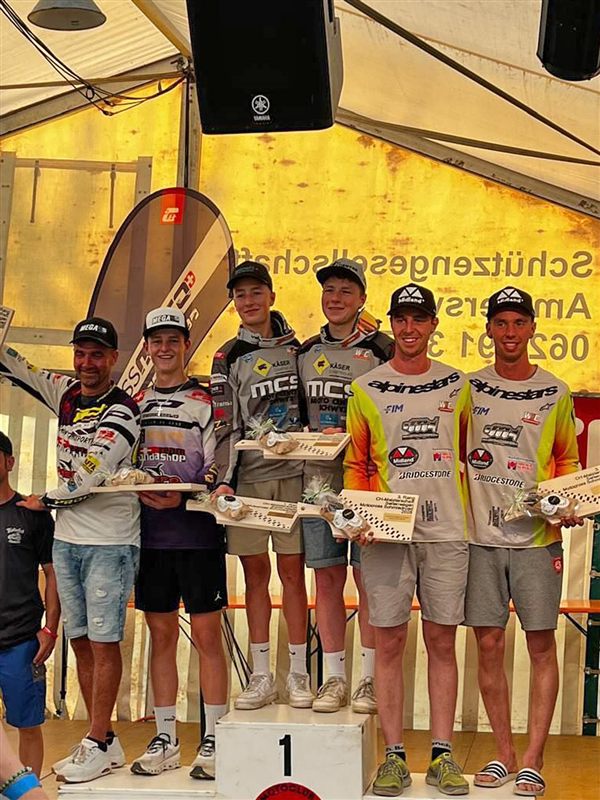 In de B-klasse zijn Stanley Verstraete – Steve de Schacht de rising stars aan het MCLB zijspancrossfirmament. Met amper een paar maanden zijspancompetitie op de teller komt nieuwkomer Verstraete met zijn ervaren co-piloot de Schacht , al aardig in de buurt van de toprijders in de A-klasse, en wist gisteren met twee vierde plaatsen, aardig in de buurt te blijven van de A-top.