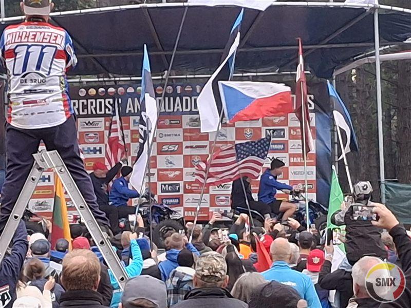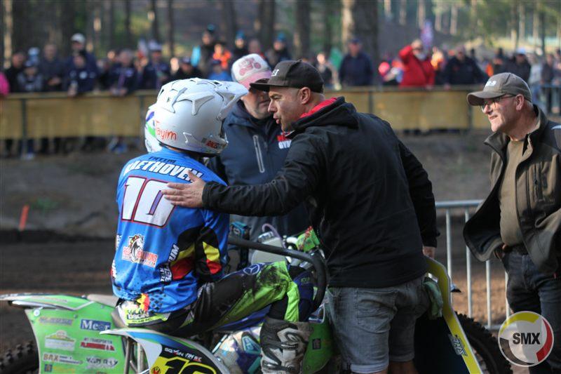 In de laatste kwalirace kwamen Hermans-vd Bogaart in de ring, waardoor de winnaars eigenlijk al op voorhand gekend waren. De wereldkampioenen leidden met de vingers in de neus van start tot finish, en daarmee zit Nederland alweer in pole-position voor de race van morgen. Wilkinson-Millard werden op ruime achterstand onbedreigd tweede. Verrassend was het rijden van de Zwitserse teenagers Remo en Luca Käser, die zich voor de allereerste keer in hun carrière in het zand waagden, en al meteen een onbetwiste derde plek lieten optekenen. De Duitsers Hofmann-Zimmermann wonnen het duel om plek vier van de Fransen Auvray-Lebreton. Onze landgenoten Delmotte-Valcke bleven strijden tot de laatste snik, en dat leverde in de slotronde nog een plaatsje winst op door de Italiaanse kampioenen Lasagna-Lasagna, in extremis te verdringen van de zevende plaats.Dat werd finaal nog een zesde ^laats, doordat de Fransman Auvray faalde bij de geluidscontrole, en vijf plaatsen werd terug gezet. Met twee zesde plaatsen van Hendrickx-Kaethoven en Delmotte-Valcke als beste resultaten, werd België op het eind van de dag zevende.