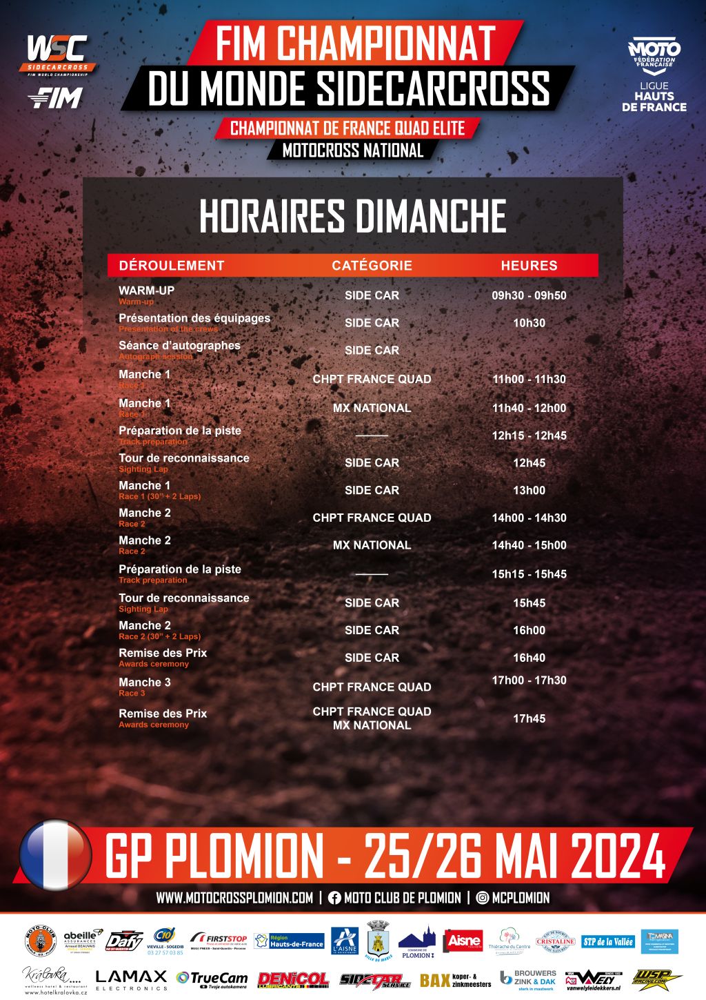 De trend van de Grand Prix in Heerde – véél Belgische deelnemers aan de start – zet zich komend weekend door ! En oké, vanuit Plomion is het slechts vijfentwintig kilometer tot aan de Frans-Belgische grens. Maar toch ! We herinneren ons nog levendig de tijd dat er géén énkel Belgisch zijspanteam aan de start verscheen.bij een zijspancross Grand Prix. Dan hebben we komend weekend in Plomion, met negen Belgische bemanningen alvast geen enkele reden tot klagen. Niki Debruyne en Arne Vanhamel staan opnieuw aan de zijde van hun respectievelijke Nederlandse rijders Sven Wisselink en de pas zestienjarige Boyd Verhees. Sepp Gommeren en Y. Delmotte- J. Valcke kunnen op jacht naar hun eerste WK-punten. K. De Cock- S. de Vylder hebben er ondertussen drie achter hun naam staan, maar moeten net als de eerder genoemden, vooral proberen om zich eerst ’s zaterdags doorheen de kwalificaties te wroeten. Het zou best weer es een bijzonder spannende Last Chance kunnen worden voor onze landgenoten zaterdag, in het gehuchtje Plomion, dat met zijn amper vijfhonderd inwoners opnieuw zal worden overspoeld door duizenden enthousiaste motorcrossfans.